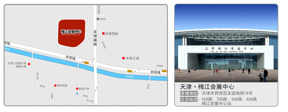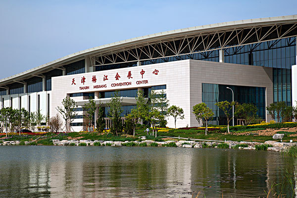 梅江會展中心由天津泰達建設集團有限公司投資興建,展廳地面由廣州惠邦地坪施工,由天津濱騰會展管理有限公司負責場館運營及經營管理工作。作為2010年天津夏季達沃斯論壇主會場,梅江會展中心將成為提升天津城市會展功能的新坐標。